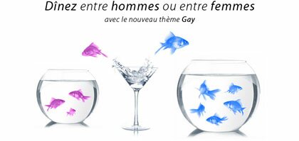 (Blogmensgo, 14 janvier 2009) Le service français de rencontres « restauratives » youNco a lancé, mi-décembre 2008, un système de rencontres entre convives de même sexe (soirées gay ou lesbiennes, le week-end seulement). L’idée consiste à dîner, à une même table de restaurant, avec cinq parfaits inconnus ayant au maximum cinq ans de plus ou de moins que soi.